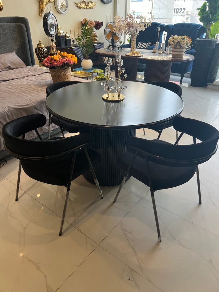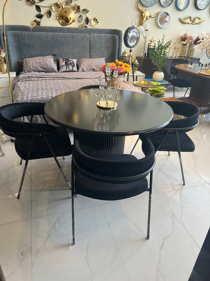 4 Seater Black Velvet Dining Table