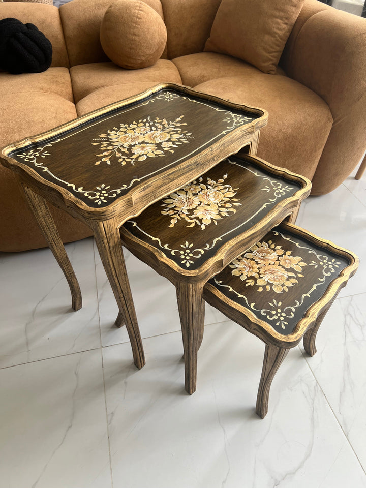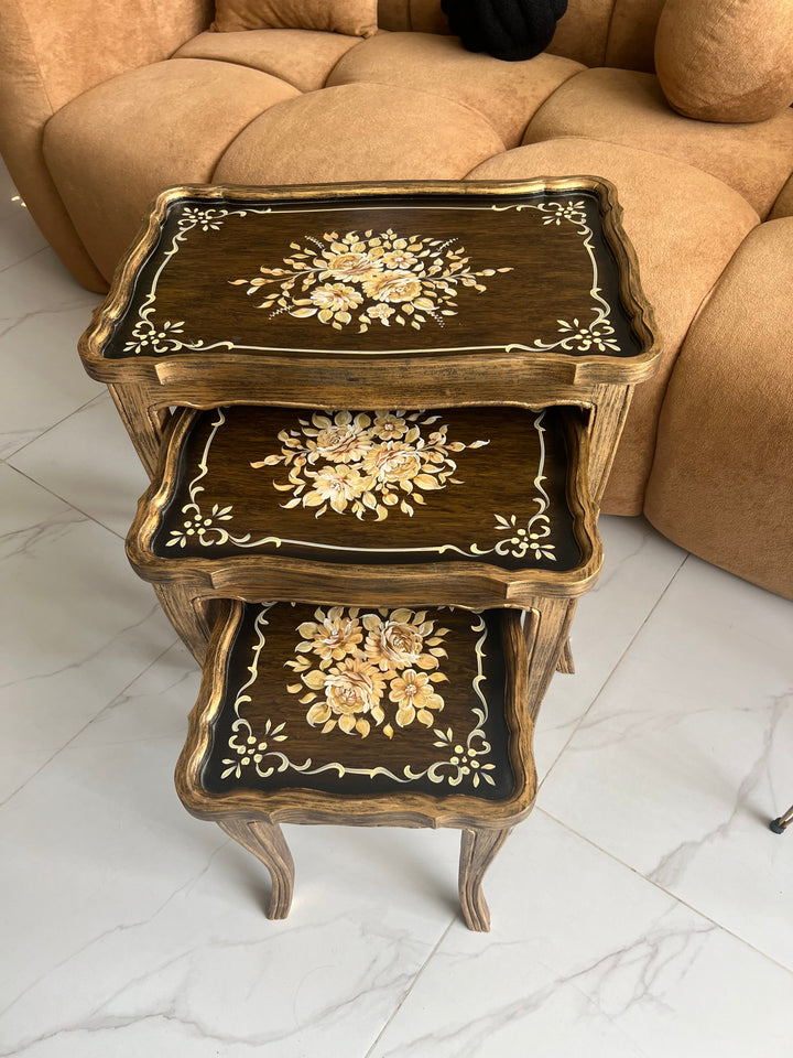 Brown Blossom Nesting Tables set of 3