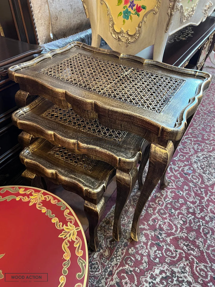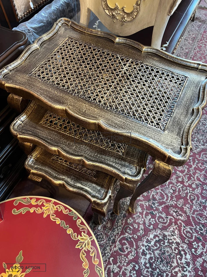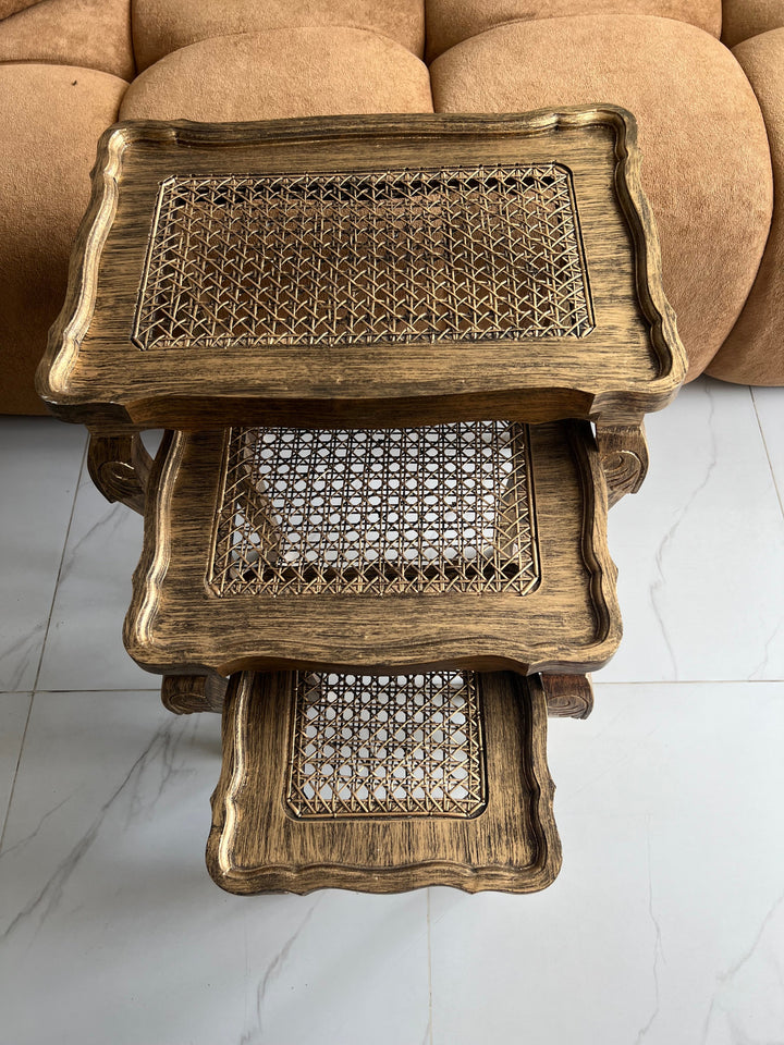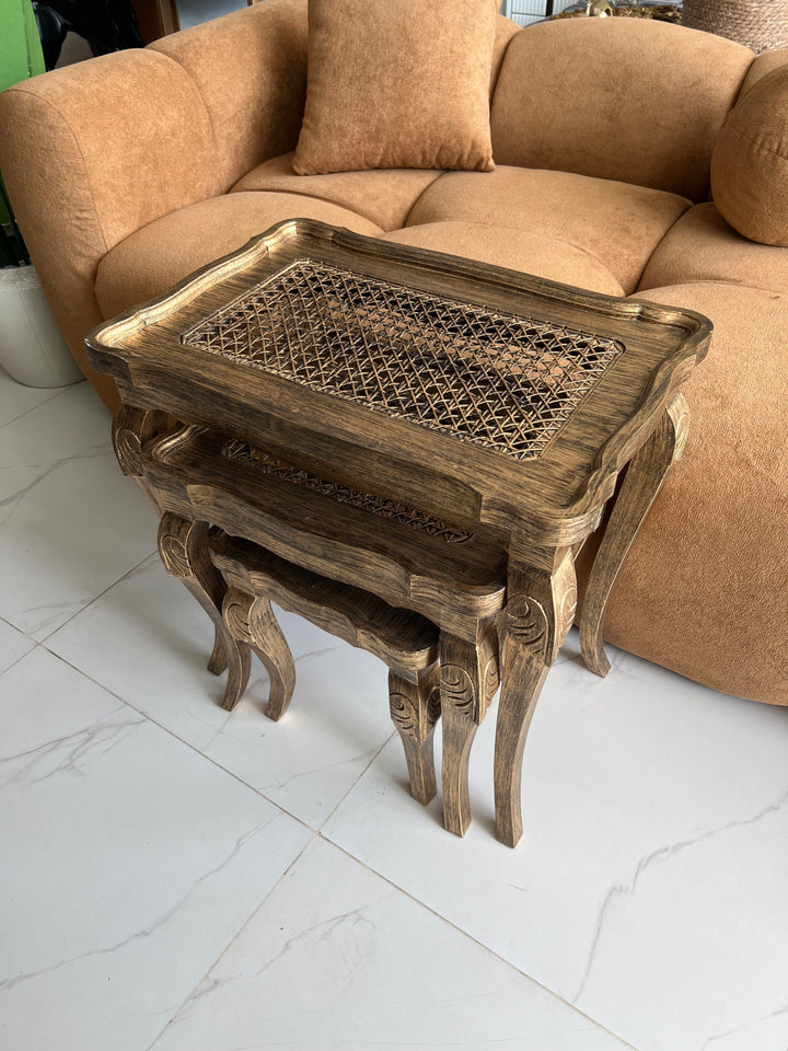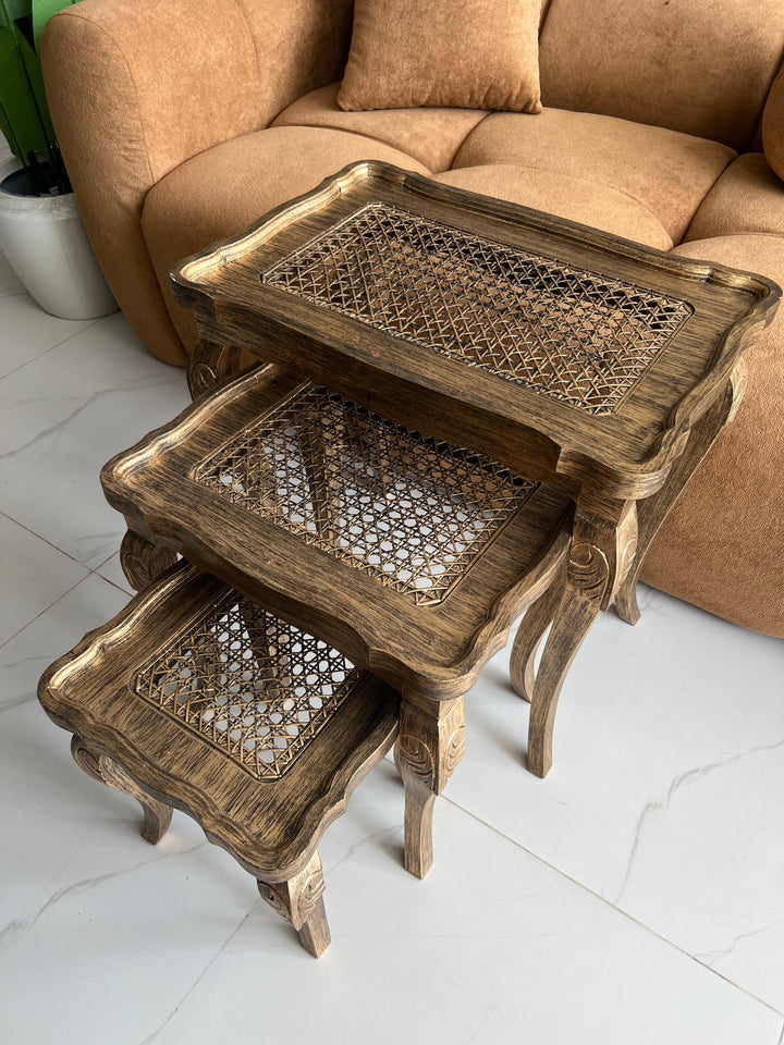 Cane Brown panther nesting table set of 3