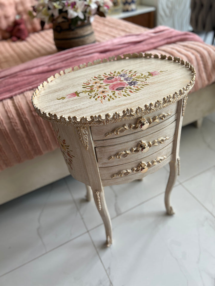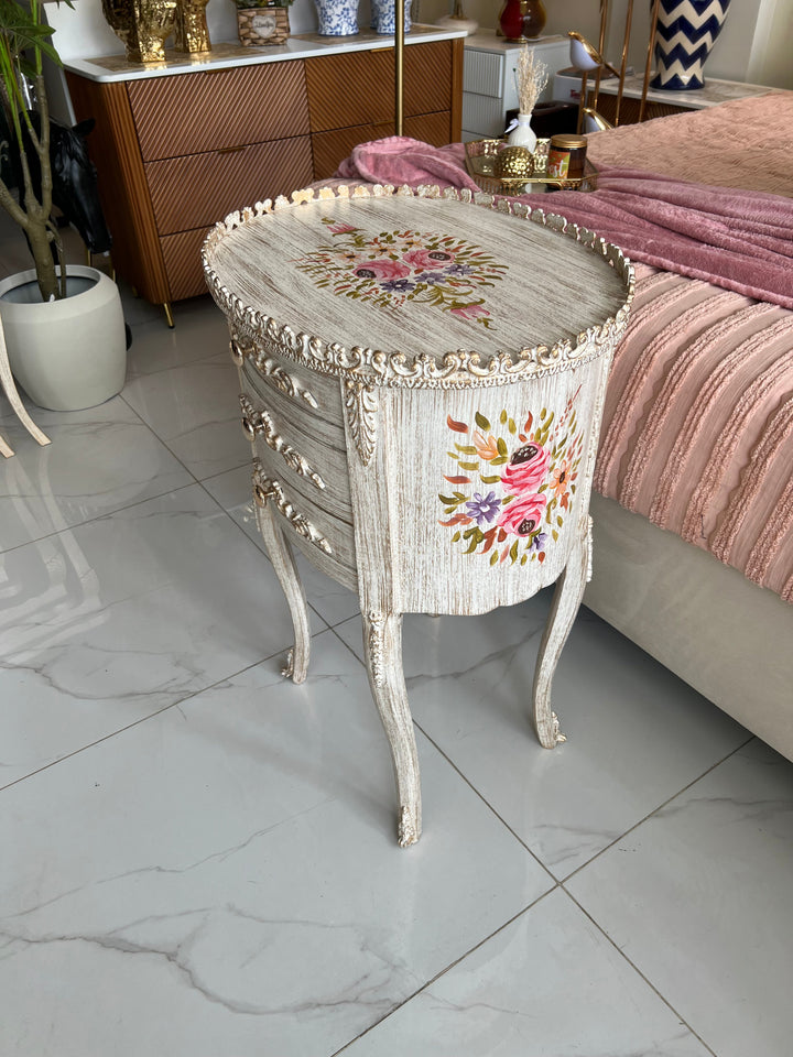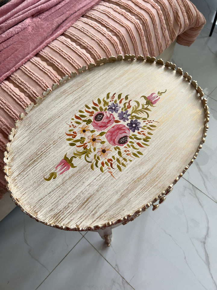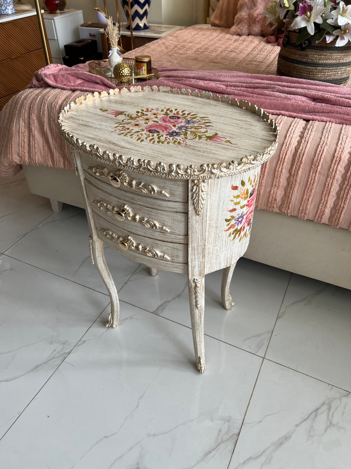 Made of Kikar wood, MDF and metal carvings. Chalk paint