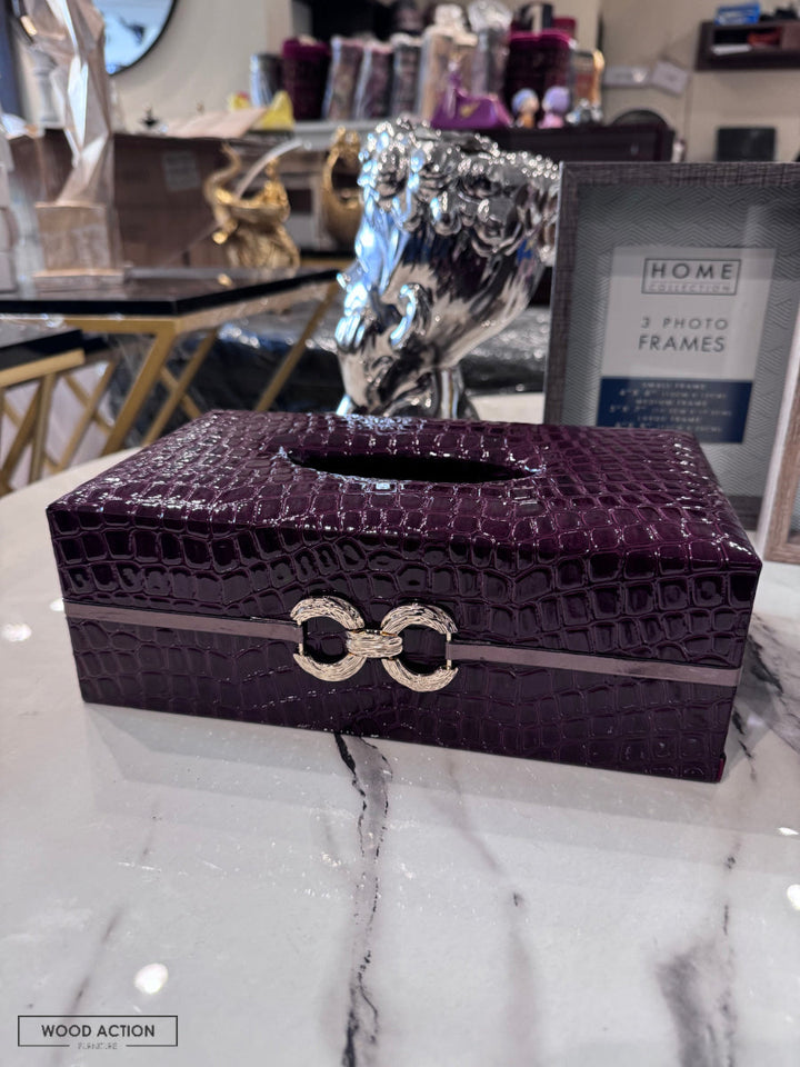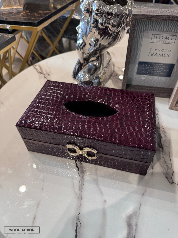 Leather tissue box Red