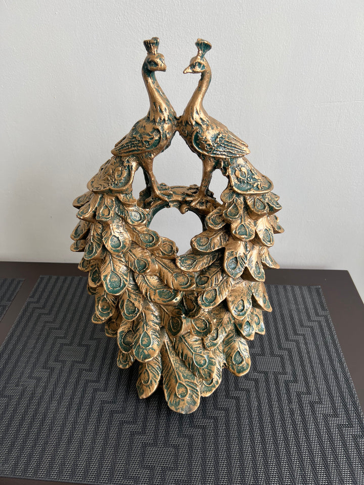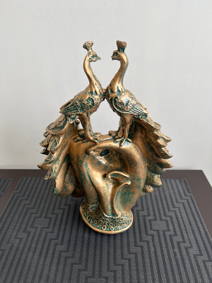 Twin Peacocks Sculpture Green Antique